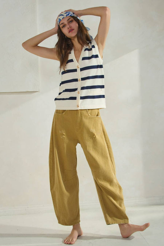 Acid Washed Colored Barrel Denim Pants Mustard
