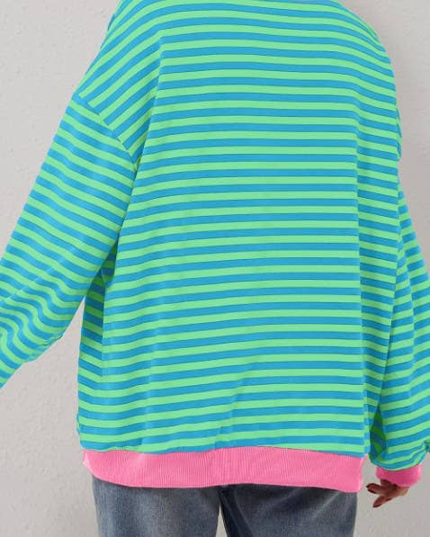 Bold Stripe Oversized Pullover with Contrast Trim