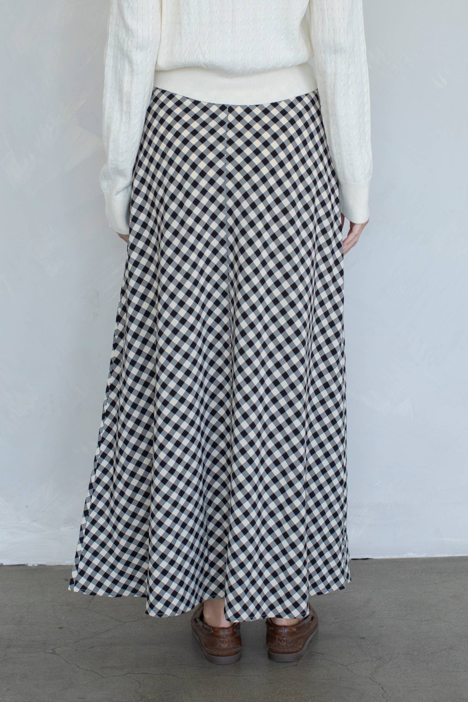 Stylish gingham maxi skirt. Perfect for the holidays!