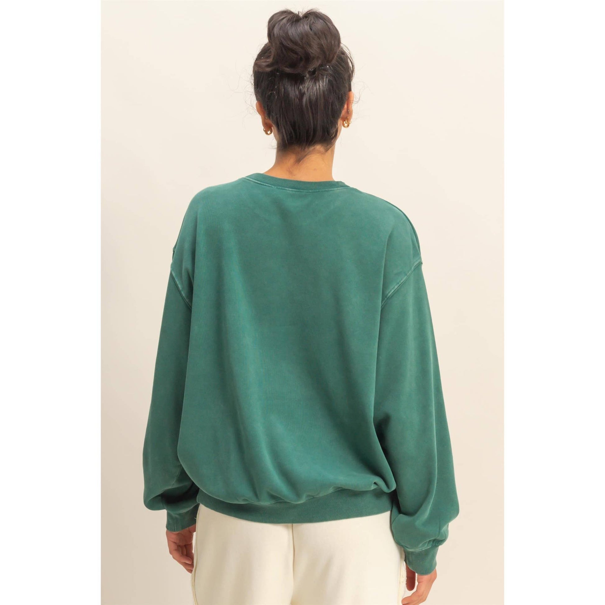 This relaxed-fit oversized sweatshirt features a mineral wash that adds a subtle vintage fade and soft, lived-in feel. A must-have item for casual wardrobes, it pairs effortlessly with jeans or leggings and layers perfectly for fall. Combines comfort with versatile style.
