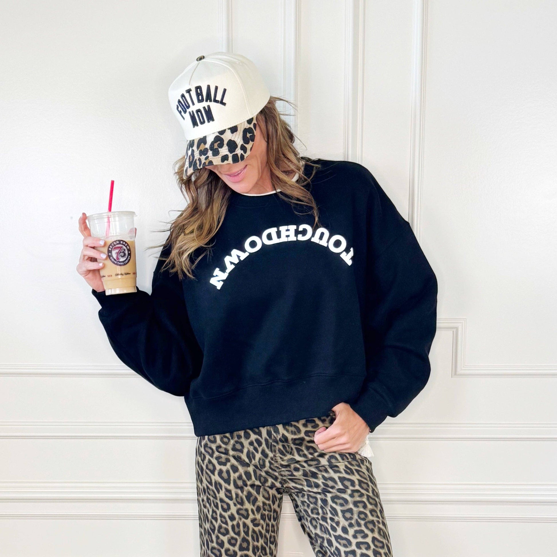 Stay ahead of the style game with the Upside Down Touchdown Puff Crop Sweatshirt. This trendy piece features a playful upside-down design and a cropped fit that pairs perfectly with high-waisted jeans or skirts.